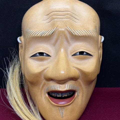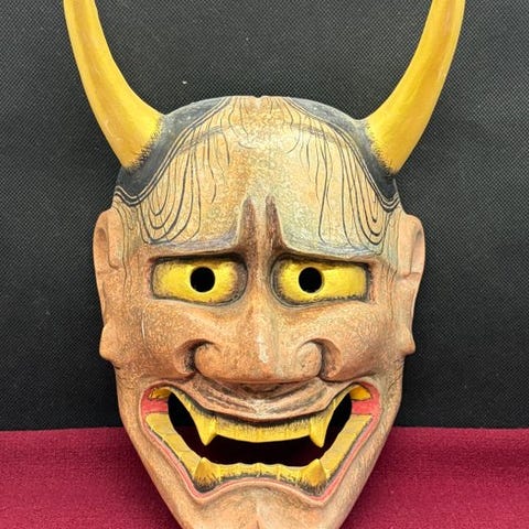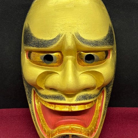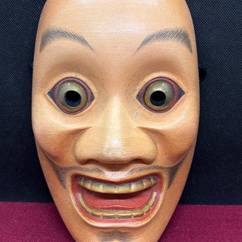 Højkvalitets japansk håndskåret træ-Noh-maske af Tenjin (Sugawara no Michizane), underskrevet på bagsiden af Michiyama, målene 21 × 16 × 9 cm, i god stand med få tegn på ældning. Klik på den blå "gå til varen" knap, for at købe eller byde på denne vare. Den samlede pris vil blive vist inden du afgiver dit bud.