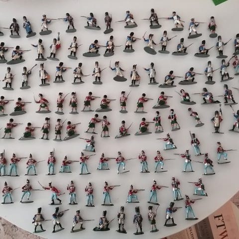40 infanterisoldater : Diverse hærkorps (grenadierer, fusilærer, officers) med tidsmæssige uniformer trofast gengivet.