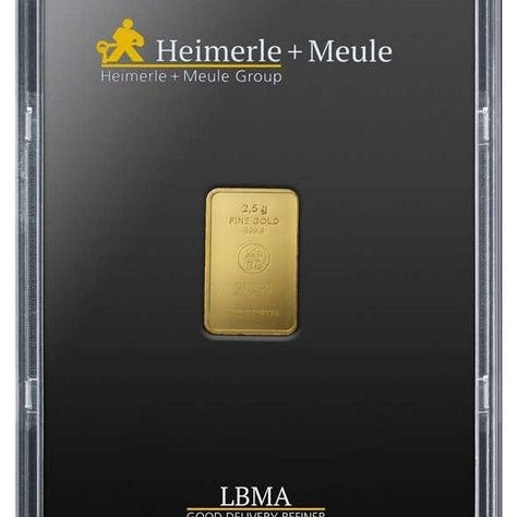 5 g guldbar fra Heimerle + Meule, finhed 999,9, LBMA-certificeret, oprindelse Tyskland, forseglet i plastikbeholder. Klik på den blå "gå til varen" knap, for at købe eller byde på denne vare. Den samlede pris vil blive vist inden du afgiver dit bud.