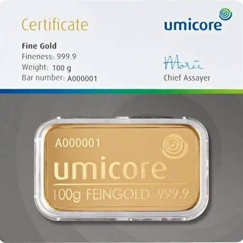 Guldbarre 5 gram UMICORE/Blister med certifikat
