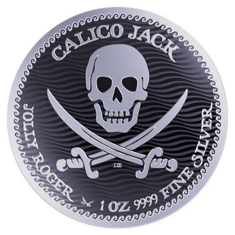 10 x 2022 1oz $2 NZD Niue Calico Jack - Jolly Roger Series sølvmønt BU (i kapsel)