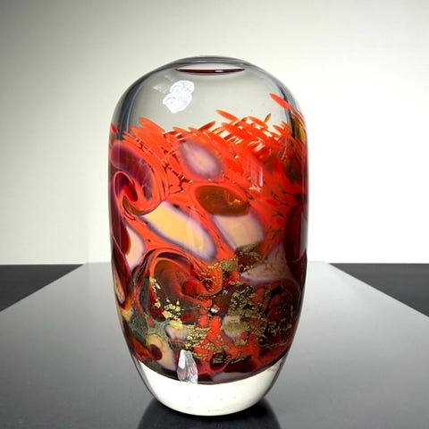 Unikt vase på 14 cm i højden af den franske kunstner og mester-glasmager Maxence PAROT.