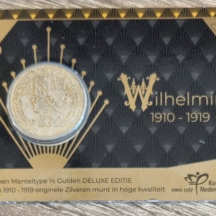 Historisk coincard sølv første 1/2 gulden Wilhelmina 1905