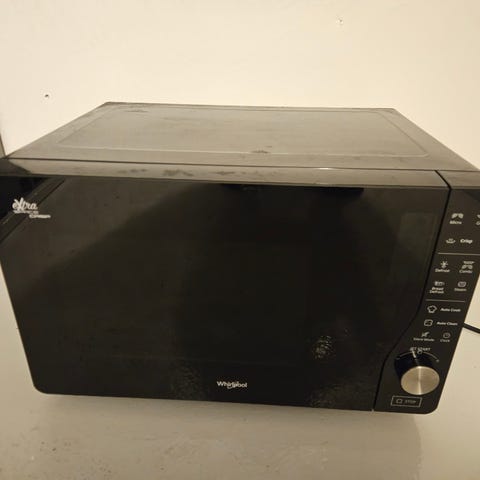 Electrolux mikrobølgeovn i sort design. Fritstående model med front i mørkt glas og betjeningsknapper i højre side. Indvendig rustfri stålkabine med drejetallerken og rist, egnet til opvarmning og tilberedning af mad. Tilsluttes almindelig stikkontakt og kan placeres på bordplade eller i et skab.