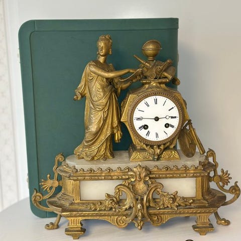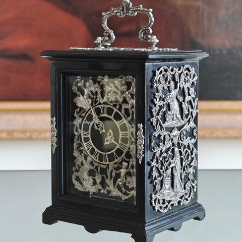 Sølvfarvet Mignonette rejsetimer fra 1850–1900 med mekanisk værk, 8-dages gangreserve, oprindelse Frankrig, originalt cylinder-escapement, rund emaljeret цира urskive, medfølgende optrækkersnøgle, i god brugt stand og i funktion. Klik på den blå "gå til varen" knap, for at købe eller byde på denne vare. Den samlede pris vil blive vist inden du afgiver dit bud.