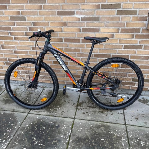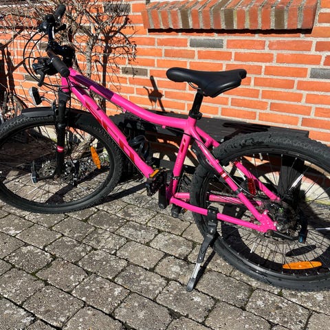 Børnecykel med 26" hjul i rød farve. Cyklen har lige styr og forlygte monteret på forgaflen. Velegnet til større børn, der har brug for en cykel i 26"-størrelse til hverdag og transport. Ring på 21 53 47 46