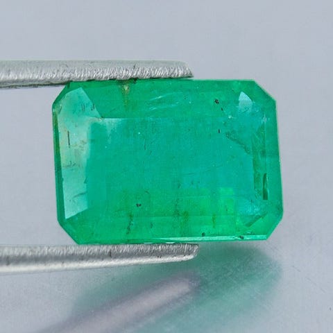 Naturlig colombiansk smaragd, 1 sten, i alt 4,45 ct, ottagonalt snit, grøn, let smøring, gennemsigtig, laboratorierapport B53584. Klik på den blå "gå til varen" knap, for at købe eller byde på denne vare. Den samlede pris vil blive vist inden du afgiver dit bud.