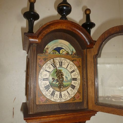 Klokken ser stadig meget smuk ud og fungerer og slår som den skal.