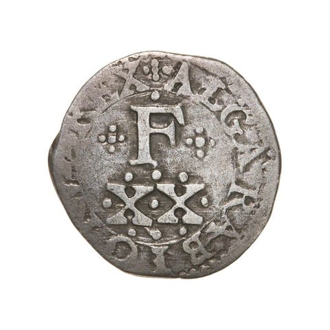 Portugal, 12 Vinténs (240 Reis), sølvmønt fra 1696 med D. Pedro II, slået i Lisboa, Campo; sjælden, vægt 8,07 g, diameter 29,25 mm. Klik på den blå "gå til varen" knap, for at købe eller byde på denne vare. Den samlede pris vil blive vist inden du afgiver dit bud.