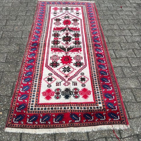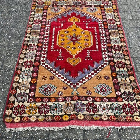Oprindelsesland: Tyrkiet; Model: Antik Türkei; Dimensioner: 180 cm × 97 cm; Materiale: højlandsvat uld på uld; Tilstand: I meget god stand. Klik på den blå "gå til varen" knap, for at købe eller byde på denne vare. Den samlede pris vil blive vist inden du afgiver dit bud.