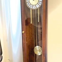En pendulurur af Amsterdamse School Art Deco-stil fra 1920’erne til 1930’erne i eg, coromandeltræ og messing, 25 cm bred, 26 cm høj, 13 cm dyb, vægt 2,5 kg, med flerdages-urværk, mekanisk bevægelse, nøgle til optrukning, slår hvert halve time med en gong, kommet fra Nederlandene, i god brugt stand med få aldersrelaterede spor; inklusive nøgle og forsvarlig emballage til Europa. Klik på den blå "gå til varen" knap, for at købe eller byde på denne vare. Den samlede pris vil blive vist inden du afgiver dit bud.