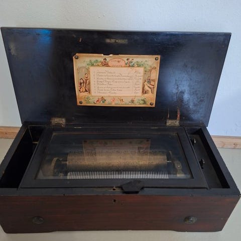 Smuk schweizisk musikboks fra slutningen af 1800-tallet (ca. 1885–1900), med udskiftelige cylindre.