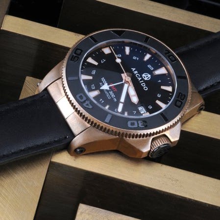 Urskive: Sort. Day-Date ved 6-tiden. Guilloché. Luminiscerende indeksmarkører. Luminiscerende visere. Luminiserende tal. Central sekundviser.