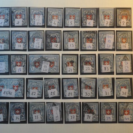 Schweiz 1852 - Rayon og Strubel, 12 eksemplarer, alle godkendte og 11 med et ...