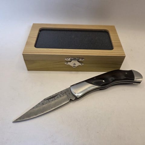 Izumi Ichiago Big Fox Damascus-lommekniven har en skærekerne lavet af japansk VG-10 Damascus-stål. Sidelagene (i alt 67 lag) er lavet af rustfrit stål.