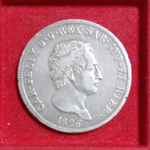 Sardinienriget 5 lire 1844 Carlo Alberto