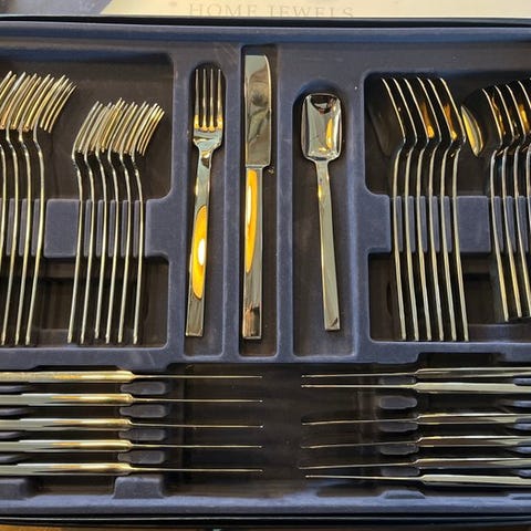 Tidløst kvalitetsbestik i original æske. På grund af opbevaring er der kommet noget slid i æsken indvendigt.