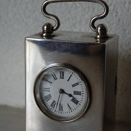 Et messings mekanisk rejseur fra 1970–1980 i et bogformet, gyldent metalhus med graveringer, Europa – 2 juveler, perlemorlignende skive med romertal, 8 dages gangreserve, uden slag, oprindelse Tyskland, i en rimelig stand med mulig manglende smådele, i funktion og holder tiden (sekundviseren kan ikke bevæge sig). Klik på den blå "gå til varen" knap, for at købe eller byde på denne vare. Den samlede pris vil blive vist inden du afgiver dit bud.