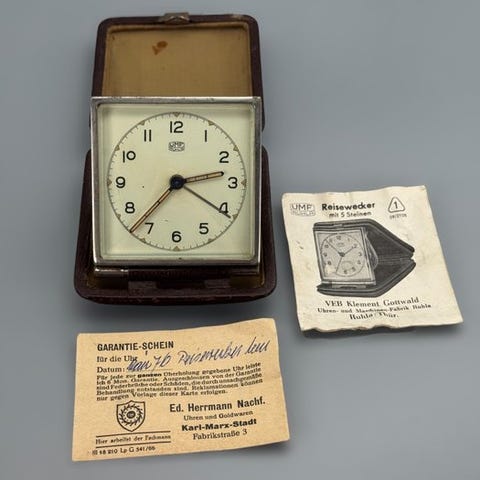 Denne vintage Europa 2 Jewels-ur er en særegen rejsealarmur i bogform, som også fungerer som en billedramme.