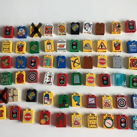 Lego duplo Klodser str 2x2 i dobbelt højde, med blandet symboler på - klar til herlig leg med fri fantasi. Sender gerne med + porto