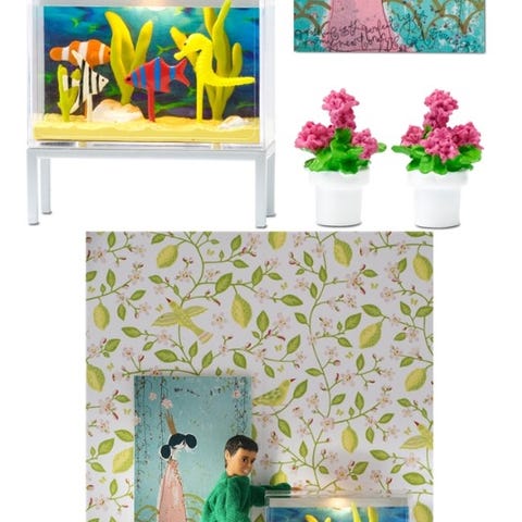 Akvarie uden vand. 2 fisk, kører på Batterier, ubåd