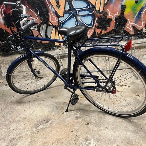 I’m selling my commuter bike in size M/L. It fits a person between 175–190 cm tall. The bike has always been stored indoors and has several new parts, including: new chain, new grips, new kickstand, new gear cable, new brake cables. Nothing is broken or stuck on the bike.