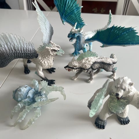 Schleich isbjørne figur sæt i hvid plast. Sættet består af en voksen isbjørn og en isbjørneunge med detaljeret pelsstruktur og bemalede ansigtstræk. Figurerne er velegnede som legetøj, samlerobjekter eller dekoration. Fremstillet i plast med præget Schleich-mærkning under bunden.