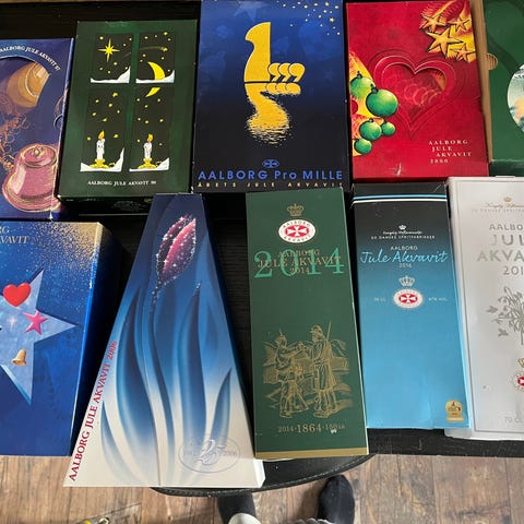 Aalborg Jule Akvavit 1998 flaske med original æske