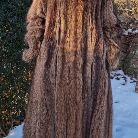 Pelsen fremstår som ægte pels – sandsynligvis ræv, men præcis type er ikke verificeret.