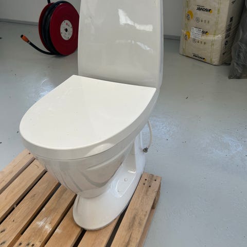 Hvidt gulvstående toilet i klassisk design. Toilettet har integreret cisterne og toiletsæde med soft close låg. Velegnet til montering i badeværelse med afløb i gulv.