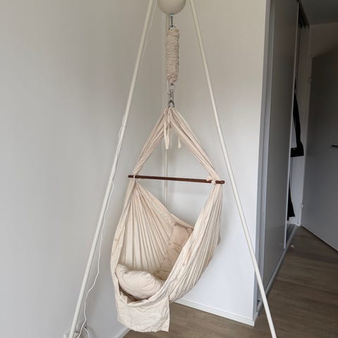 Moonboon slyngevugge inkl. motor, stativ og madras.