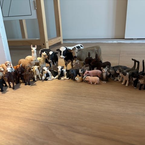 Schleich: 12 mennesker, 40 dyr, 4 høballer.