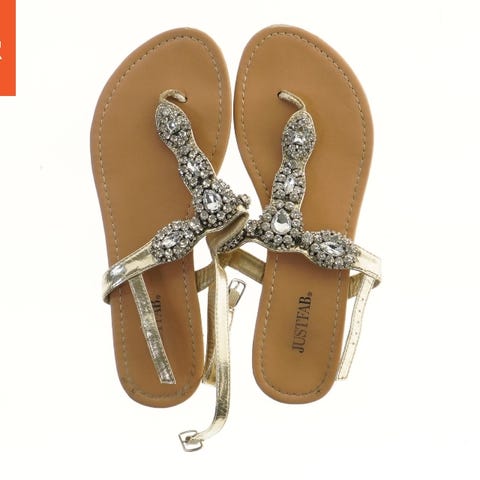 Sandaler med en størrelse på 25 cm. De har en flettet rem, som er lavet af et grønt reb. Sålen er sort med en hvid kant og har en bølgeformet underside for bedre greb.