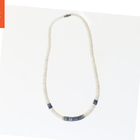 Halskæde med grønne perler, hvor længden er 46 cm. Perlerne er formet i en uregelmæssig stil, hvilket giver halskæden et naturligt udseende. Lukningen ser ud til at være i metal, hvilket sikrer holdbarhed ved brug.