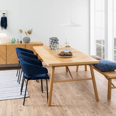 Fra Sadadesign, leveret i januar 2023. Ø140 cm med to tillægsplader 50 cm pr. tillægsplade i egetræ.