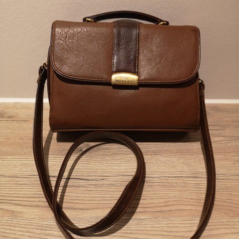 Rosetti skuldertaske til kvinder i kunstlæder. Tasken er sort med et geometrisk mønster og har to lange skulderremme i sort kunstlæder. Den lukkes med lynlås og har et opdelt hovedrum med ekstra lynlåslomme indeni til mindre genstande. Udvendigt ses logo på forsiden. Tasken egner sig til daglig brug, fx til pung, mobil, nøgler og andre personlige ting. På billederne ses brugsspor ved et af hjørnerne i bunden.