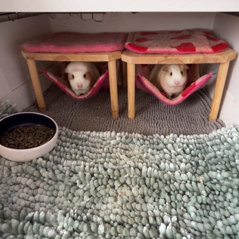 Jeg sælger mine to dejlige marsvin, da jeg er blevet ældre og desværre ikke længere har den tid, de fortjener. Det er en svær beslutning, og jeg ønsker derfor et godt og kærligt hjem til dem.