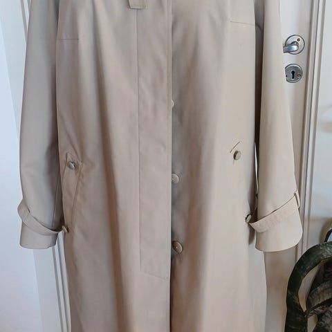 Flot lys trenchcoat (str. 40) i blødt gedeskind sælges - kun brugt få gange. Frakken har bælte og praktiske lommer. Pris 900kr.( fra ny 2000kr)
