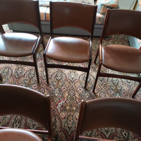 De 6 stole er med sort kunstlædder.