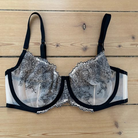 Laura Ashley bh i beige/pastelgul polyester med blonde. Størrelse 36B (80B) til dame og Bluxe bh i hvid i samme størrelse. De er begge helt nye, og blev købt sidste år i usa.