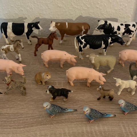 Schleich bondegårdsdyr plastfigurer køer og kalv. Sættet består af flere kofigurer og en kalv i forskellige farver. Figurerne er detaljerede plastdyr velegnet til leg på bondegård, dyretema eller som samlerfigurer. Størrelsen passer til andre Schleich bondegårdsdyr og tilbehør.