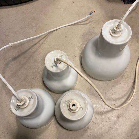 Gamle lamper fra Bing & Grøndahl. Det er de originale i porcelæn og med porcelænsfatninger.