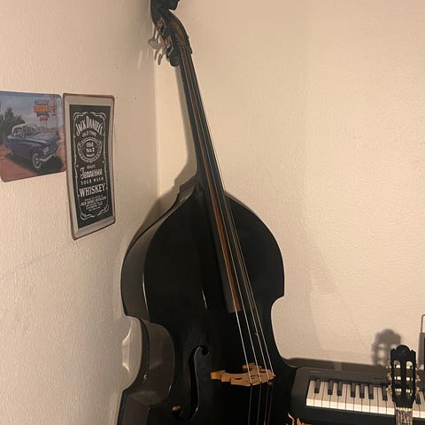 Dean elektrisk kontrabas med stativ og polstret bære- og opbevaringstaske. Instrumentet er udformet som en slank el-kontrabas med justerbart gulvstativ, der giver stabil støtte under spil. Velegnet til brug i hjemmet, studie eller på mindre scener, hvor der ønskes kontrabaslyd i et mere kompakt og transportvenligt format. Tasken har lynlås og bærehåndtag for nem transport og beskyttelse af instrumentet under opbevaring.