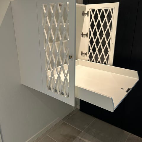 Vi har monteret plexiglas i lågerne for at beskytte indholdet mod støv. Dette kan nemt fjernes, hvis det ønskes.