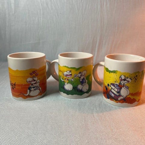 Skraldespand med et farverigt Diddl-illustration. Motivet viser en karakteristisk Diddl mus ridende på et blåt muldyr mod en baggrund med violette og gule nuancer. Skraldespanden er lavet af metal og bærer Diddl-logoet på bunden. Størrelsen af skraldespanden er 25 cm i højde. Tag: trashcan, cartoon, diddl