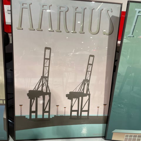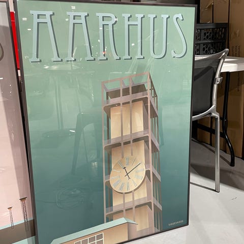 Vissevasse Aarhus plakat med åen og isat metalramme med kobberfinish.