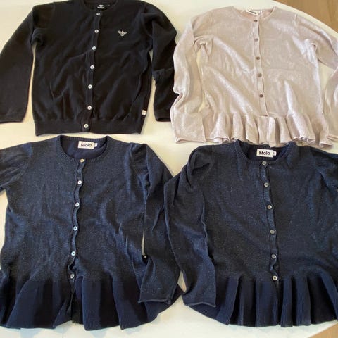 Molo glimmer cardigan str. 146/152 sælges billigt for 50kr. da der er pletter på det ene ærme (ej forsøgt fjernet).