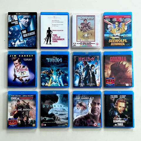 55 blandet filmsamling af UHD Blu-ray (4K) action-, krigs- og sci-fi-genren. Filmene er i standard plastcovers, alle i UHD Blu-ray 4K markering. Velegnet til samlere eller til hjemmebiograf.