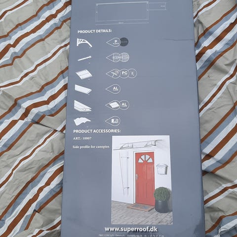 Superroof Berlin dørtag 1500 x 950 mm. Dørtaget er beregnet til montering over en yderdør for at give beskyttelse mod regn og sne. Modellen har en buet konstruktion med beslag til vægmontering. Taget leveres som et komplet sæt med beslag og monteringsdele som vist på emballagen. Velegnet til brug over indgangsdøre, bagdøre eller andre udvendige døre, hvor der ønskes et fast tagoverdækning i størrelsen 1500 x 950 mm.
