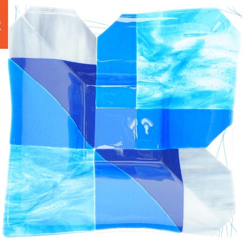 Dette er et dekorativt håndlavet glasfad med en diameter på 20 cm og en højde på 3 cm. Farvet i levende nuancer af blå, orange og gul, har fadet et abstrakt mønster, der kan bringe et farverigt præg til enhver indretning. Fadet er velegnet som en dekorativ skål eller til servering af tørre snacks.
